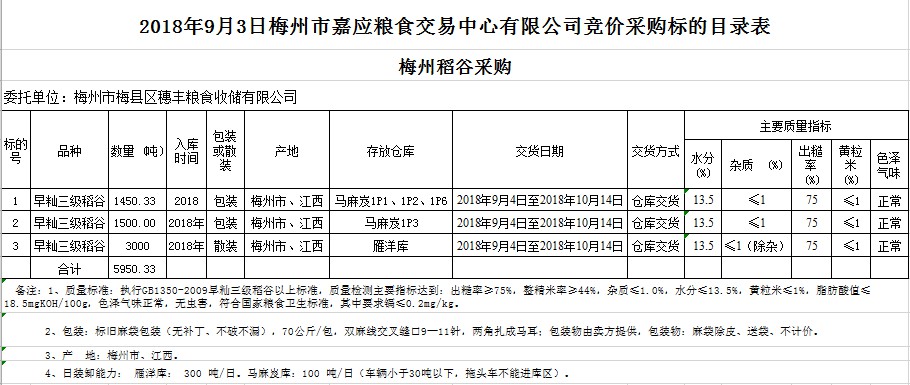 易時間和地點:20189月3日(星期一)上午10。廣東省梅州市彬芳大道南161號梅州市糧食交易中心3樓。
