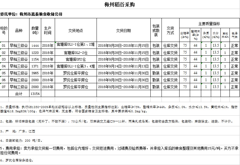 2018年9月5日梅州市嘉泰糧食收儲(chǔ)公司稻谷采購