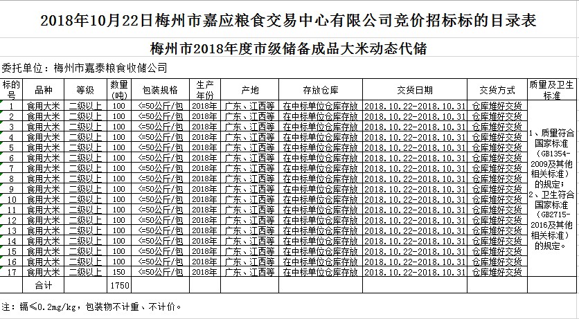梅州市2018年度市級(jí)儲(chǔ)備成品糧油動(dòng)態(tài)代儲(chǔ)公開(kāi)招標(biāo)公告