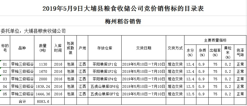 2019年5月9日大埔縣糧食收儲(chǔ)公司稻谷銷售