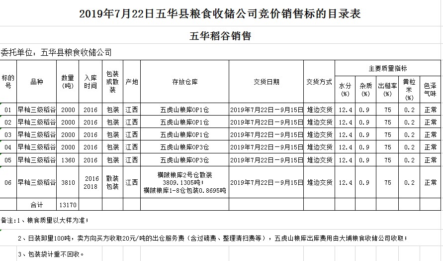 文件下載:2019年7月22日廣東省五華縣糧食收儲(chǔ)公司稻谷銷售