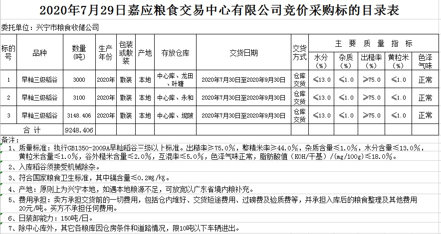 2020年7月29日興寧市糧食收儲(chǔ)公司稻谷采購