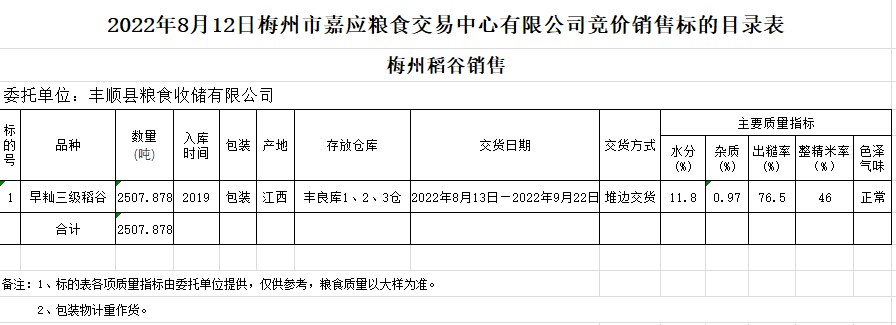 2022年8月12日豐順縣糧食收儲(chǔ)有限公司稻谷銷(xiāo)售