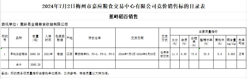 2024年7月2日蕉嶺縣金穗糧食收儲有限公司稻谷銷售