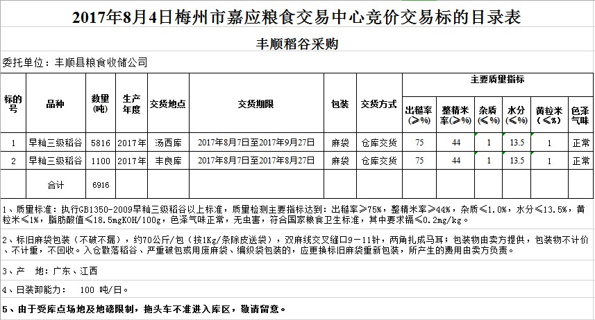 2017年8月4日豐順縣糧食收儲(chǔ)公司稻谷采購(gòu)