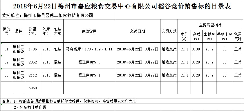文件下載:2018年6月22日梅州市梅縣區(qū)穗豐糧食收儲有限公司稻谷銷售